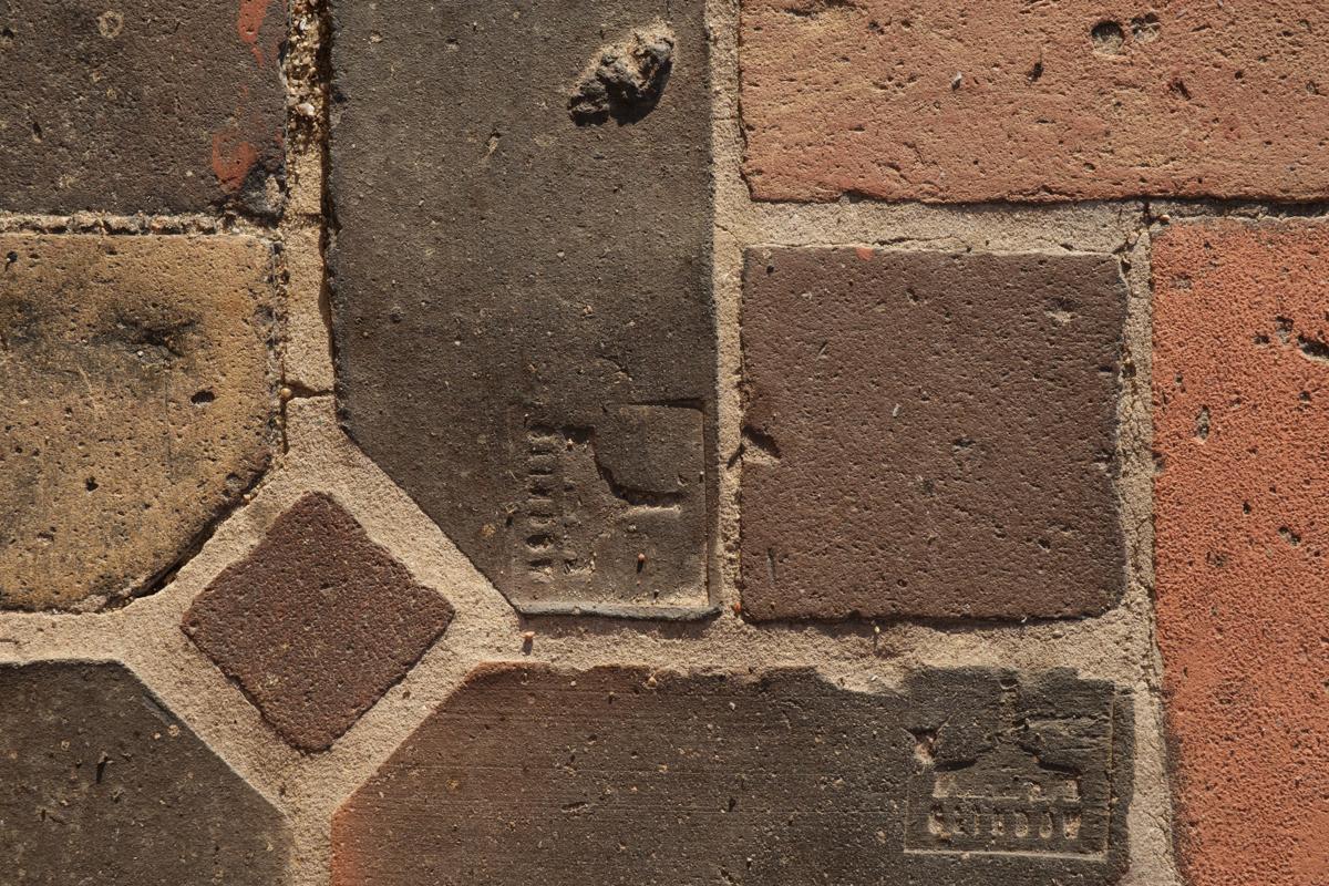 Terrakotta-Zierelemente, weiß geschlämmtes Ziegelmauerwerk