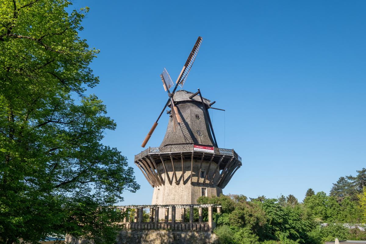 Bis 1738 stand an diesem Platz eine Bockwindmühle, die wegen Baufälligkeit durch eine moderne Mühle vom Typ Holländer ersetzt wurde. Als das Schloss in unmittelbarer Nähe zur Mühle gebaut wurde, wollte Friedrich der Große die Mühle abreissen lassen - das Geklapper störte ihn. Der Müller wehrte sich gerichtlich dagegen und hatte Erfolg - die Mühle blieb.