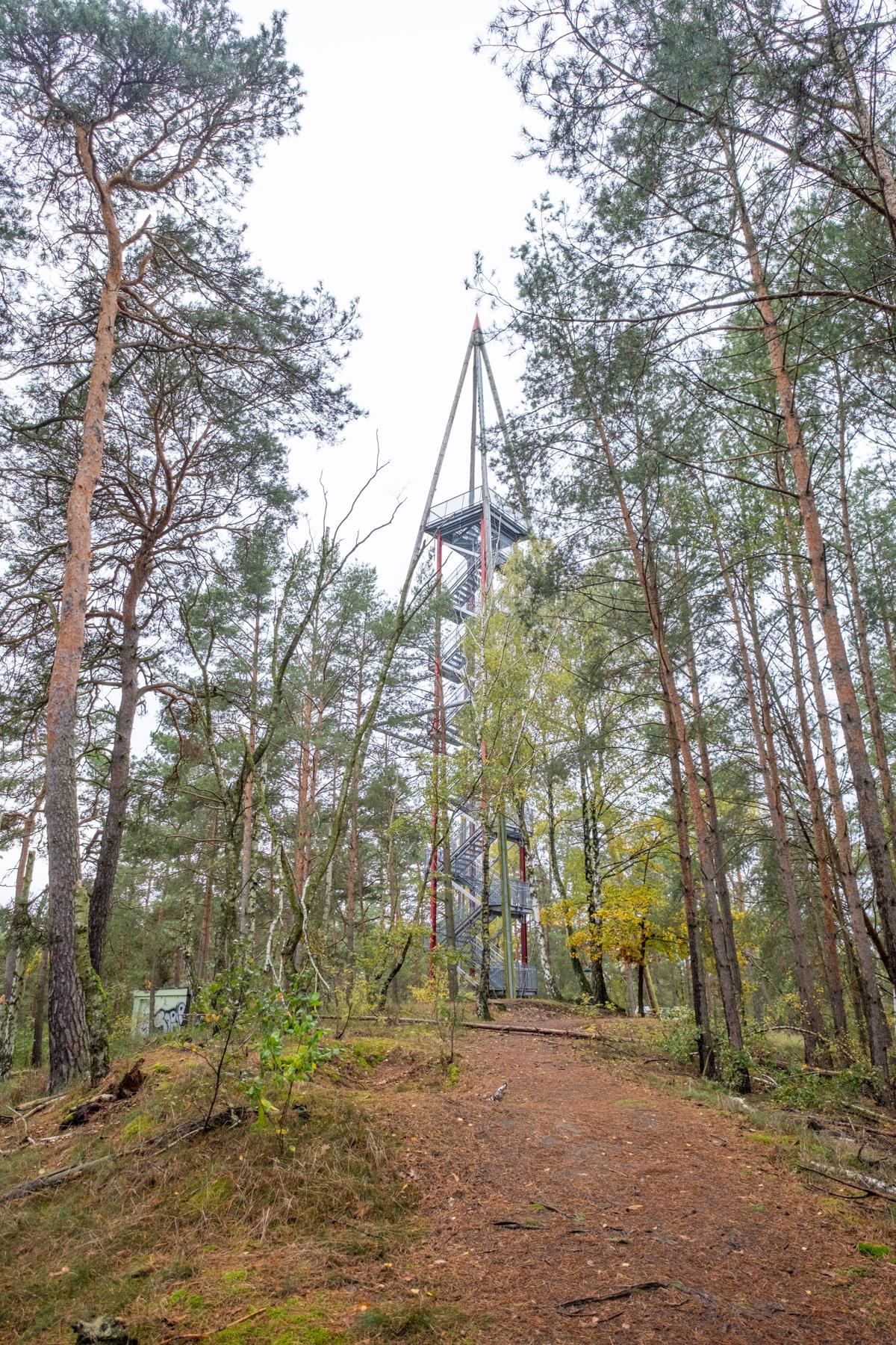 Der Aussichtsturm ragt mit seinen 42 Metern hoch über den bewaldeten Gipfel des Götzer Berges hinaus und bietet ein großartiges Panorama auf die Havelniederung und die umliegenden Dörfer.