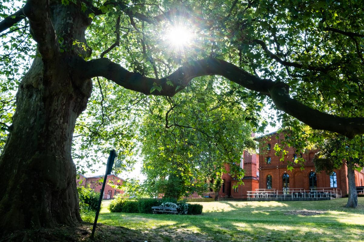 Die alten Platanen in Groß Behnitz stehen am Seeufer im Park des Landguts Stober.