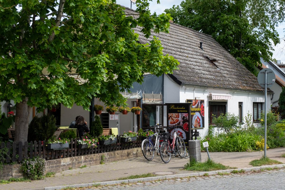 Die buddhistische Bäckerei Backwahn ist im Havelland weithin bekannt, un die Schlangen vor dem Geschäft bezeigen die Qualität. Kaffe und Kuchen können im Terrassenbereich der Bäckerei genossen werden.