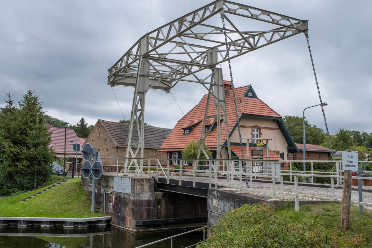 Wir verlassen den Ort auf der Flatower Straße und stoßen bald auf den Wustrauer Rhin, dem wir auf einem Feldweg folgen. Links das Wasser, rechts Felder, und schon bald zweigt der Weg vom Kanal ab und führt uns durch eine ruhige, offene Landschaft. Wir nähern uns dem Bützsee, dessen Lage wir eher erahnen als sehen, während sich der Weg durch eine Gruppe ehrwürdiger alter Bäume zieht. Danach geht es über den Triftweg bis nach Altfriesack. Dort überqueren wir die Zugbrücke – ein technisches Schmuckstück – und erreichen die Fischerei Pfefferkorn am Karpfenteich, wo es das wohlverdiente Fischbrötchen gibt. Gestärkt treten wir den Rückweg an, folgen der Straße bis zur L164 und biegen am Waldrand rechts in den nächsten Pfad.